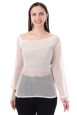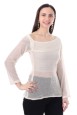 - Features: Thread net top for women features a boat neckline, long flared sleeves, sheer mesh, hollow out fishnet, solid color, high stretch, and diamante detailing all over. A dazzling array of faux diamond join forces to form this stunning piece.